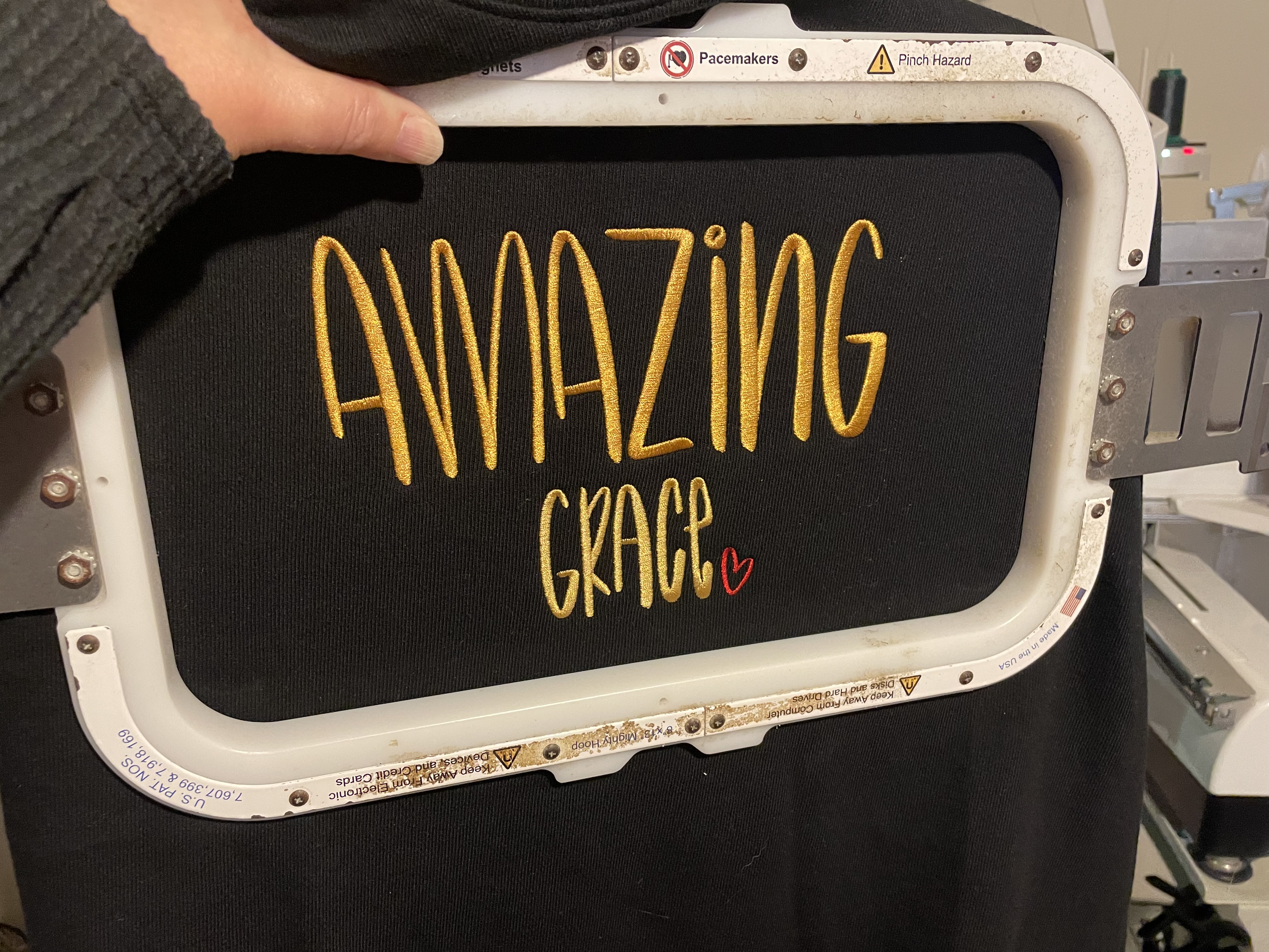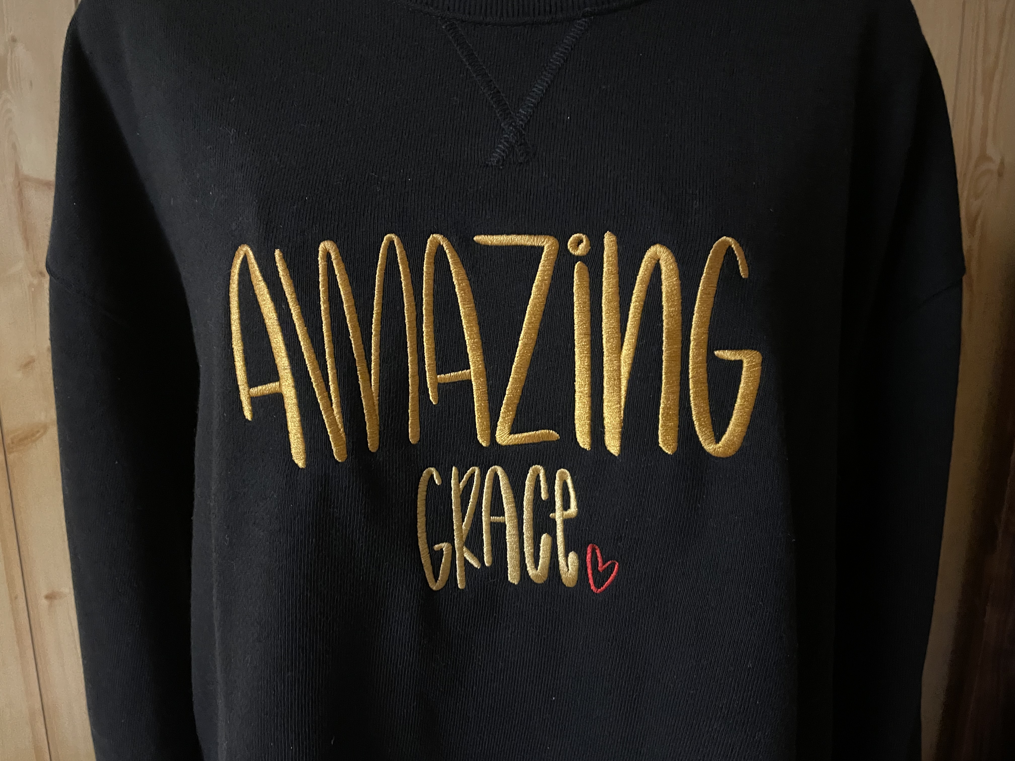 The Amazing Grace design is stitched on a Gildan Sweatshirt in your choice of color and size.