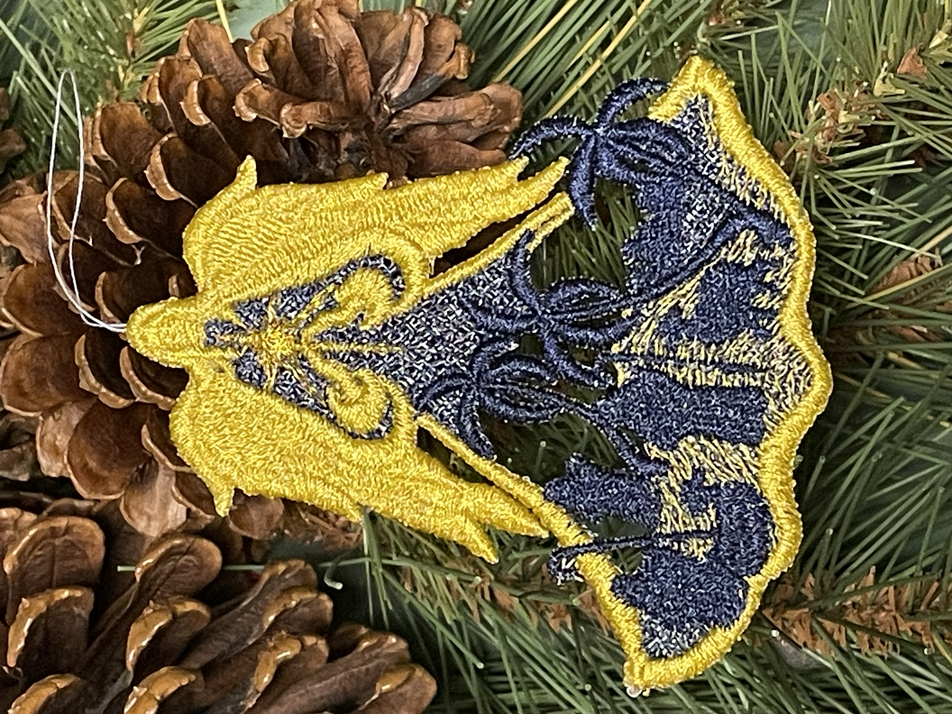 The Angel of Shephards will be stitched in a rich Navy with gold wings. In the hands of the Angel you will see she carries a brilliant star.