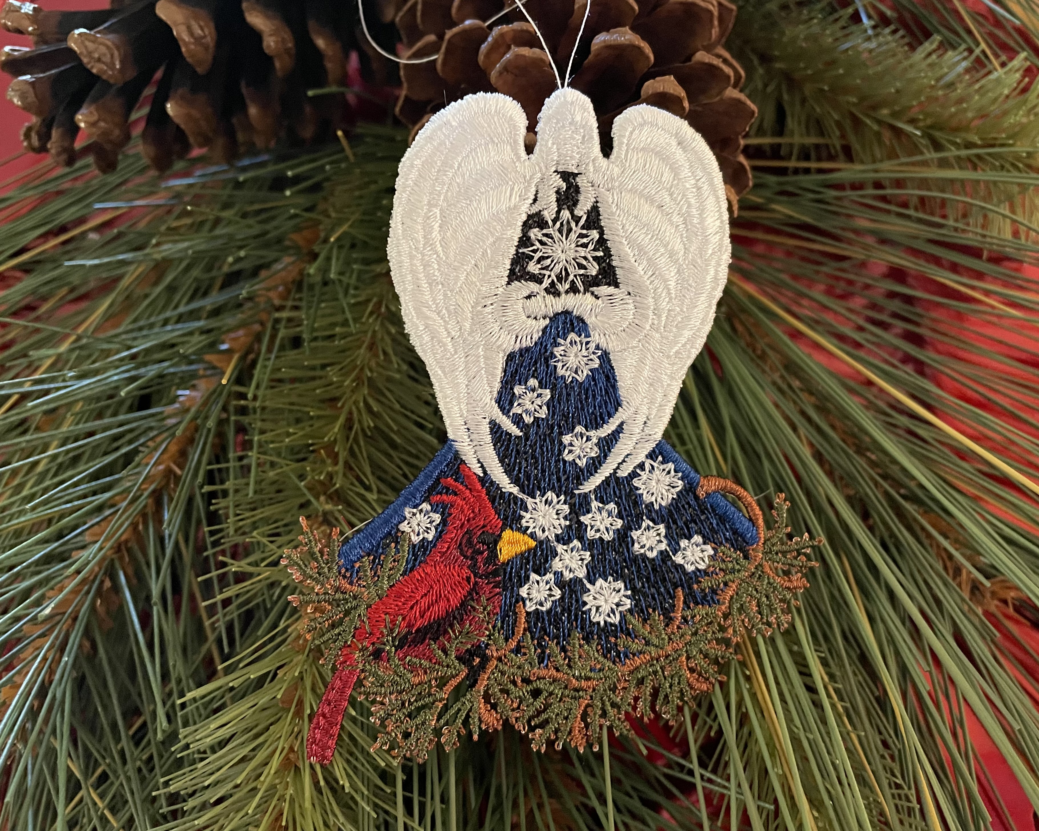 Our Cardinal Angel is made with quality polyester thread embroidered to create a quality ornament that will be treasured for years to come.