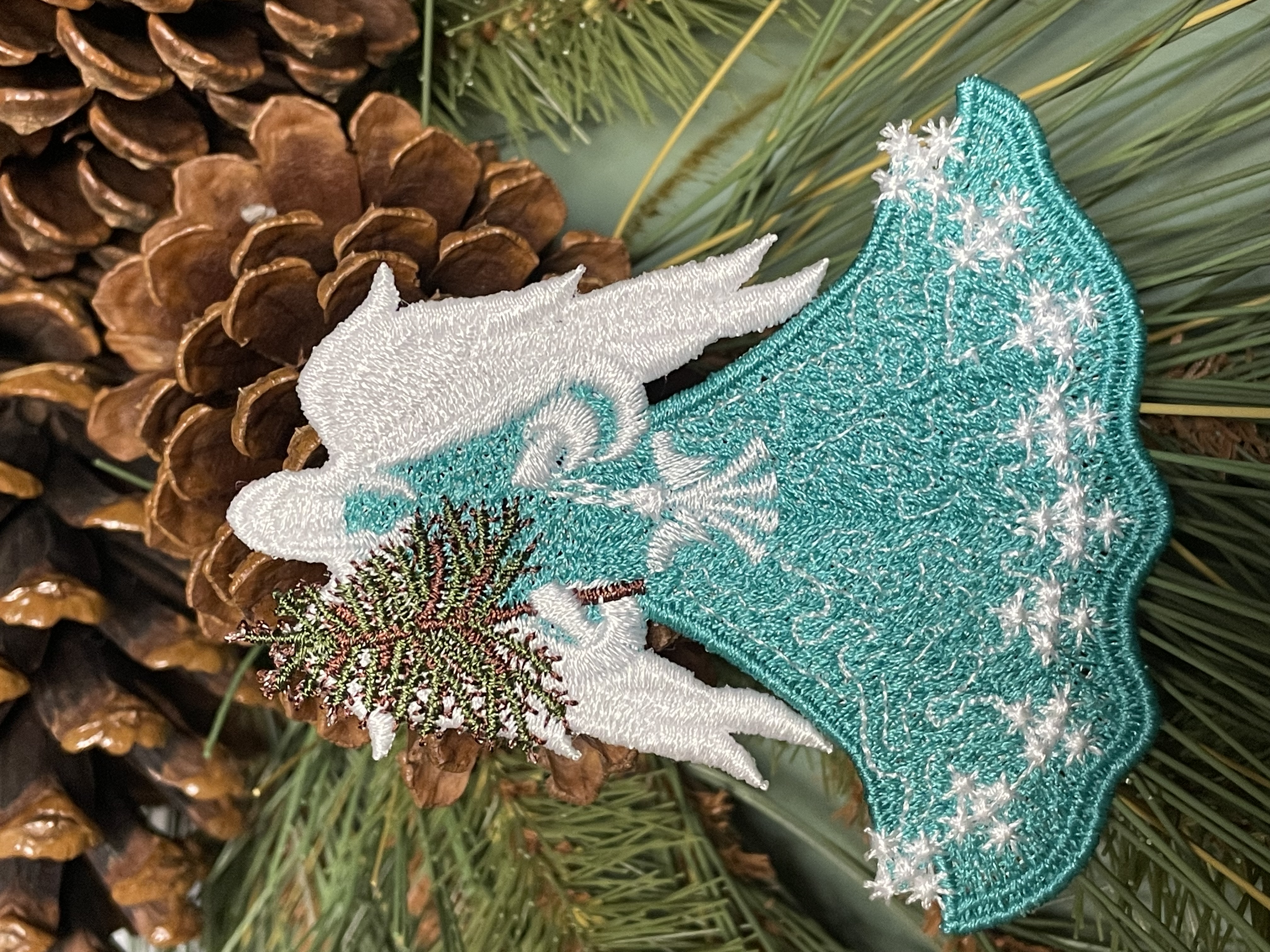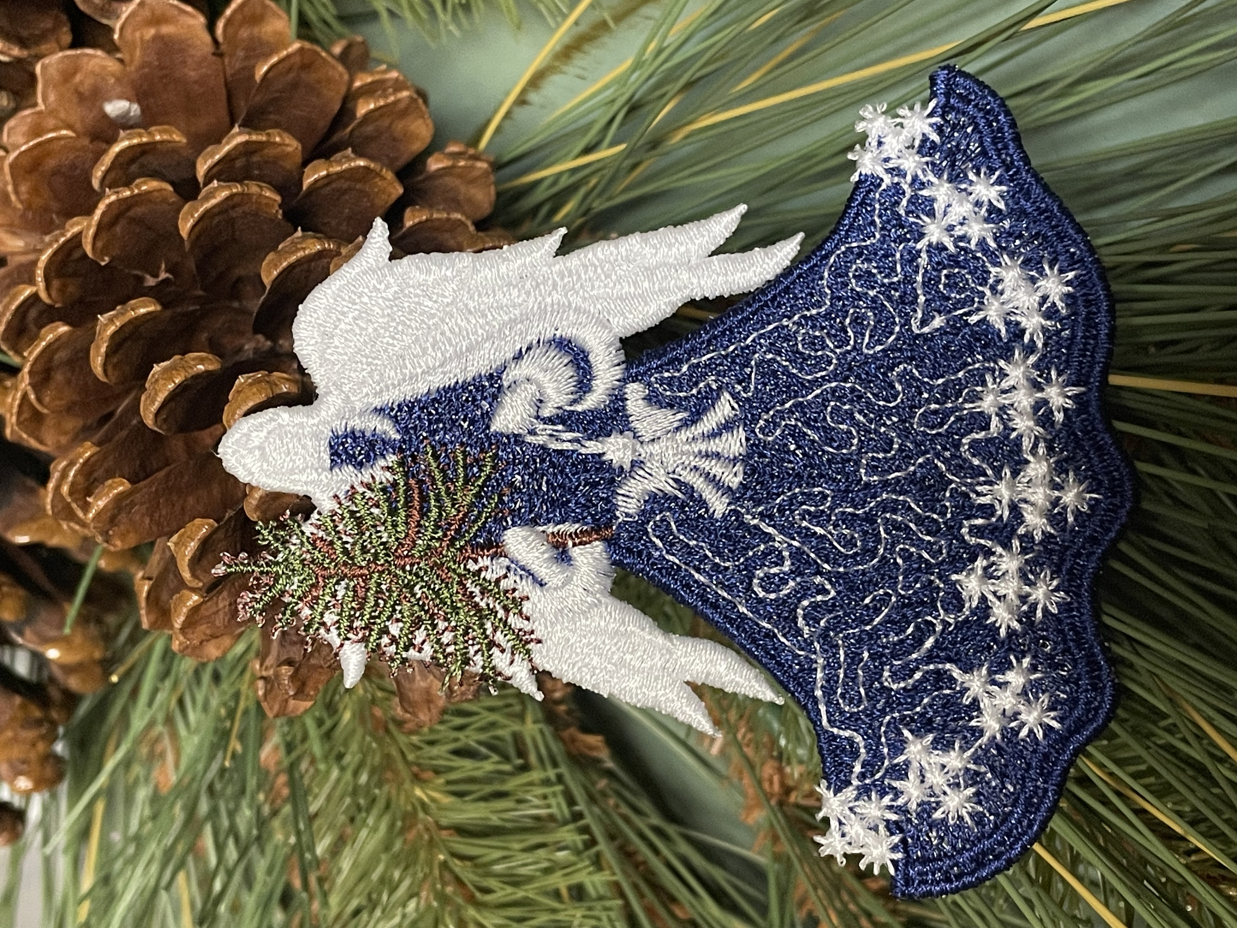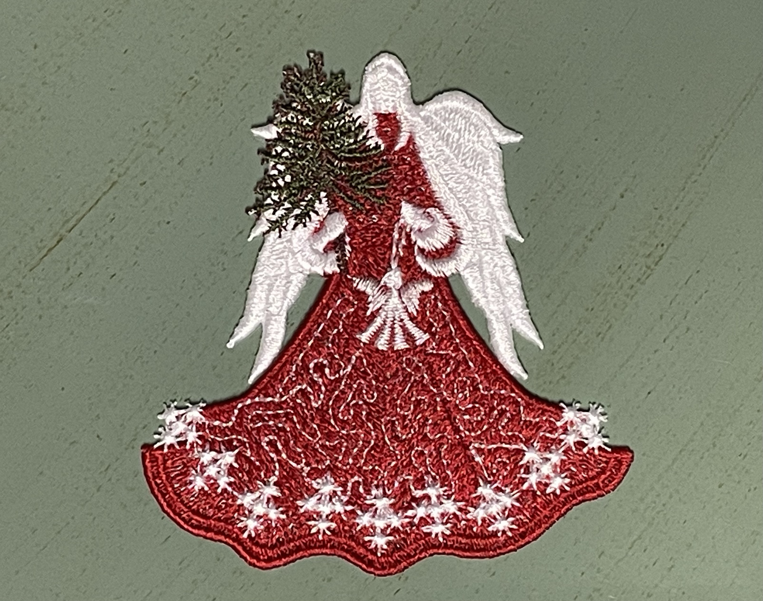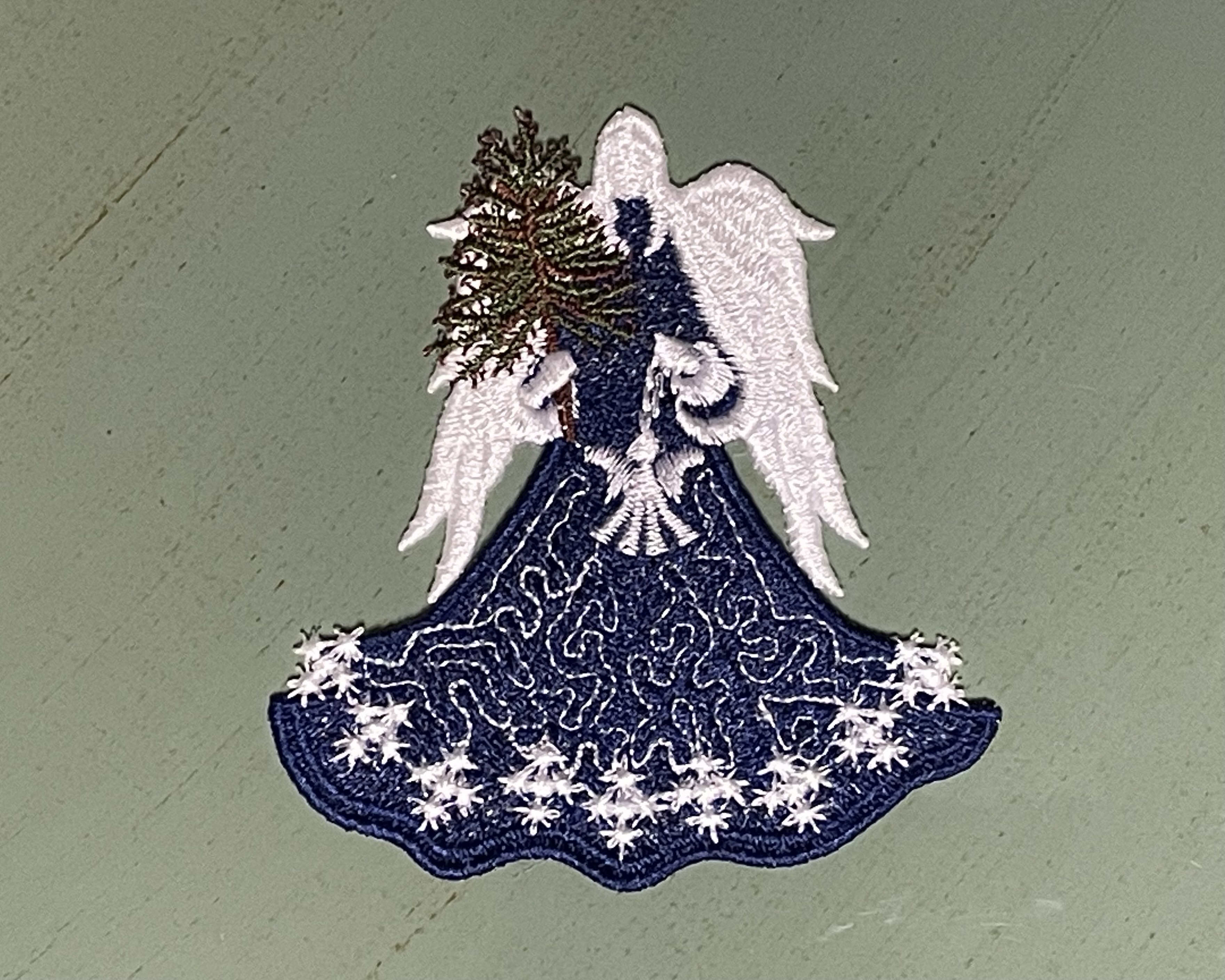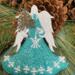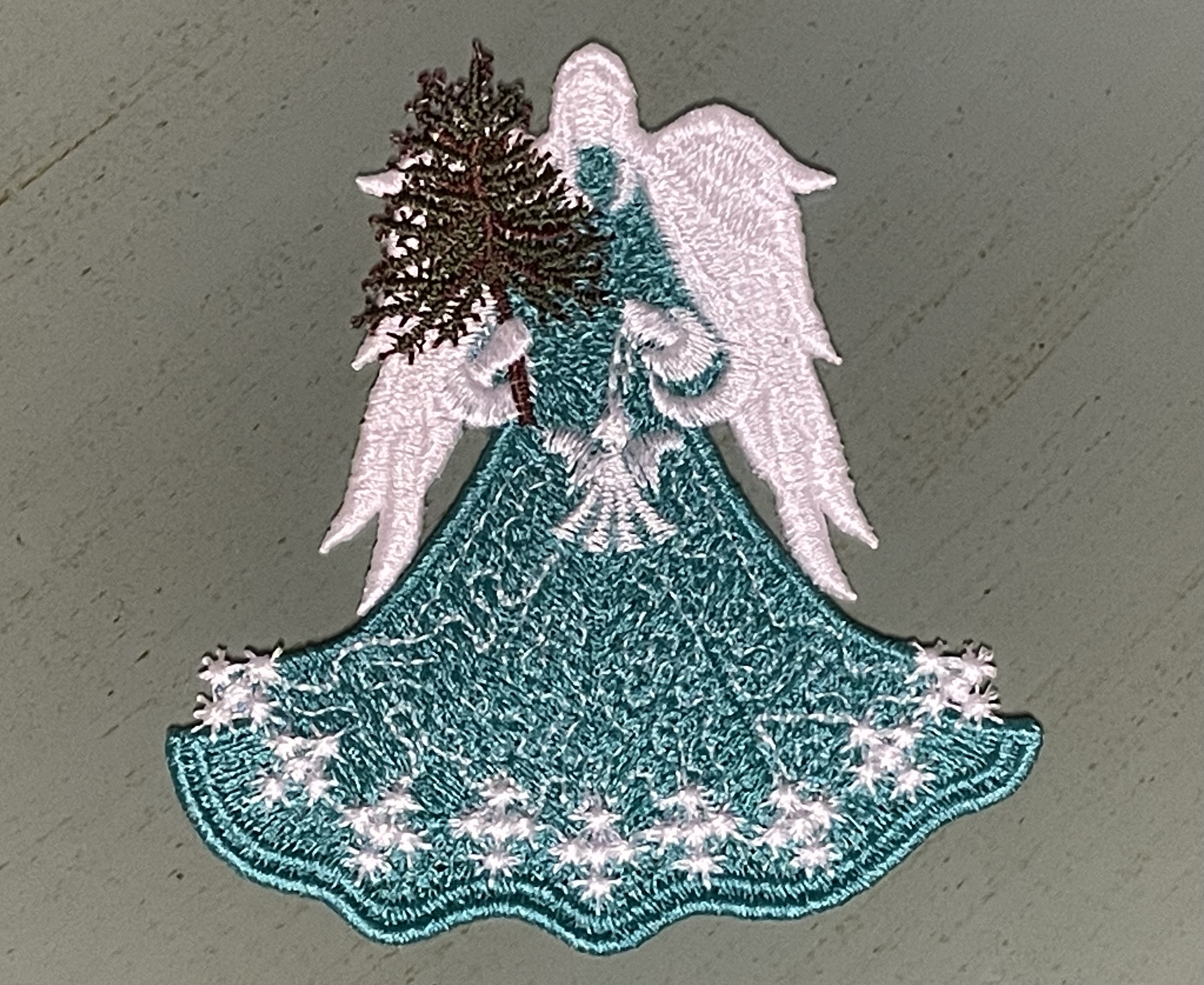 The Christmas Tree Angel is an Angel dressed in the color garment you request and is holding a small tree and an Angel ornament.